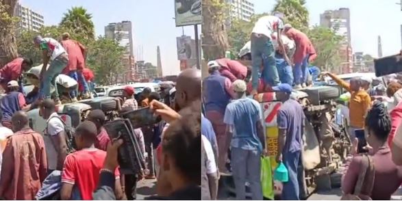 Bystanders rushed to the scene, helping to extract the injured from the overturned vehicle. Emergency services were yet to arrive as authorities had not released an official statement at the time of reporting.